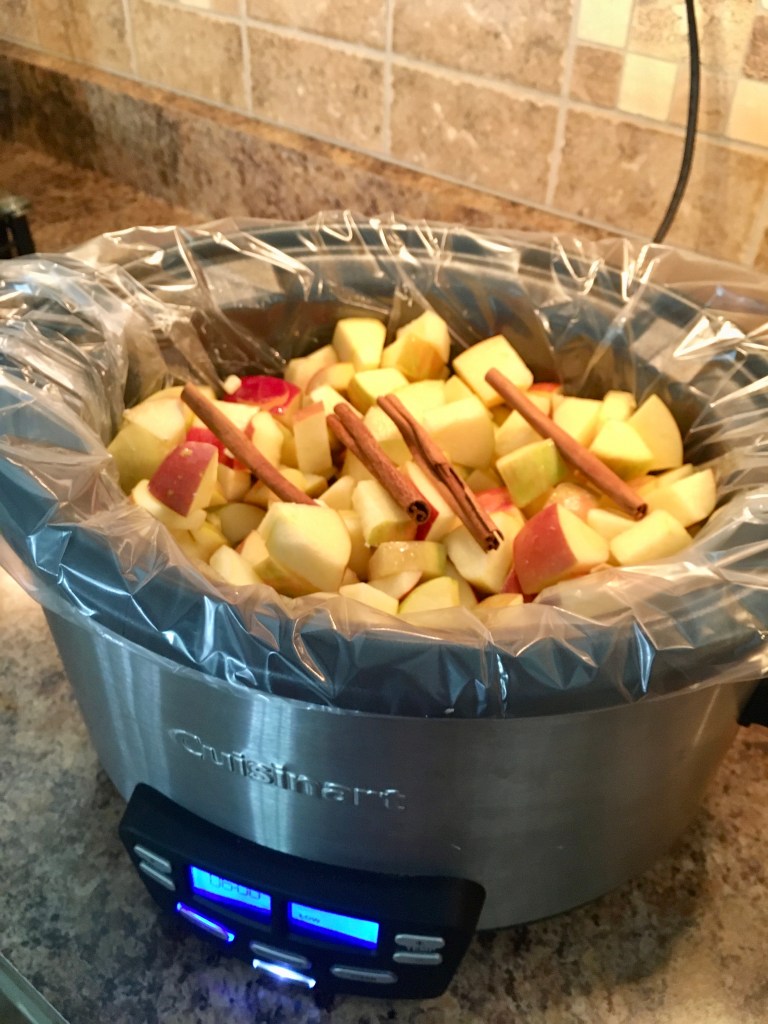 - Cook applesauce on High for 5-7 hours (depends on your slow cooker; I did 6).