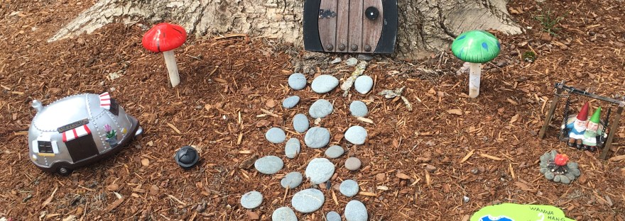 In April, I was lucky enough to take a long, socially distanced walk in my old neighborhood in Essex, Vermont with my neighbors. We discovered this fun gnome campsite around the base of a tree in someone’s front yard.