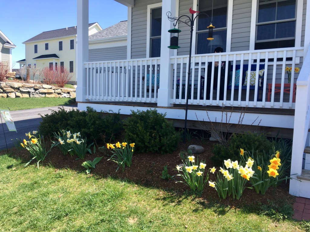Daffodils in early spring (which in Vermont is the end of April!). I counted five different kinds.