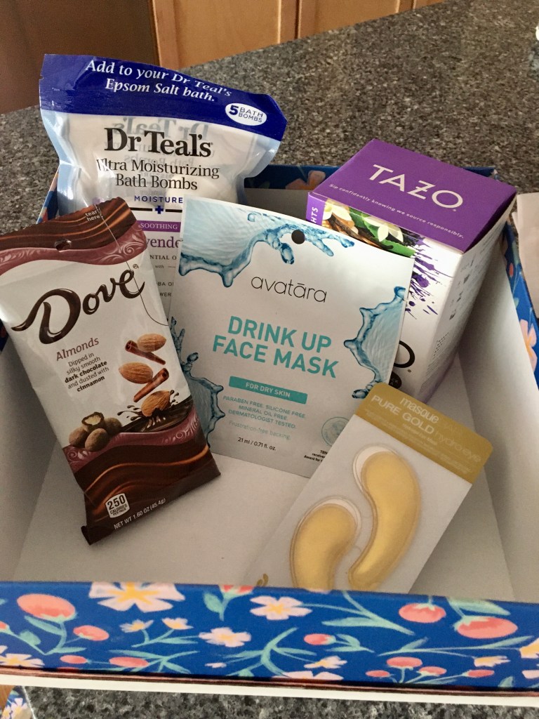 With my new spa accoutrements, I soaked in the tub, used face and eye masks, sipped tea, and nibbled almonds. You can readily find these items at Target, Walmart, or online, and don’t have to spend a lot to create a calm oasis at home for an afternoon or evening.
