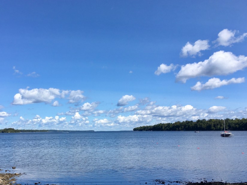 The crunchy sound of the gravel drive as we approach the camp, the musty smell of the “white house,” the old home on the property, and the view of the lake are deeply nostalgic for me. I am grateful I can now share this experience with L’Husband and Le Chien, who loves all the new sniffs.