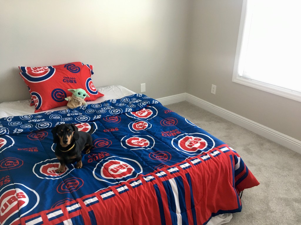 This air mattress with Cubs linens and Baby Yoda is the height of sophistication, non?