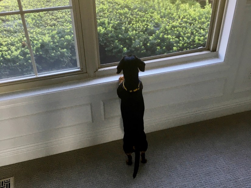 Today’s post shares some shots of Le Chien exploring the new maison (as he did in Vermont!). We’re pressing on with organizing, cleaning, decorating … more to come!