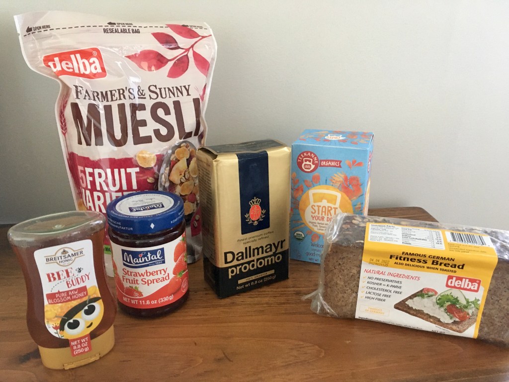 The box came with a lot of classic German items, from Müsli to so-called “fitness” Brot (a dense, delicious bread) to Kaffee. Branding and marketing for German foods and drinks often focuses on health and uses words like vitality, fitness, and wellness in the names of products, including this fitness bread.